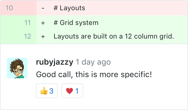 Save your teammates a few notifications. Bundle your comments into one cohesive review, then specify whether comments are required changes or just suggestions.