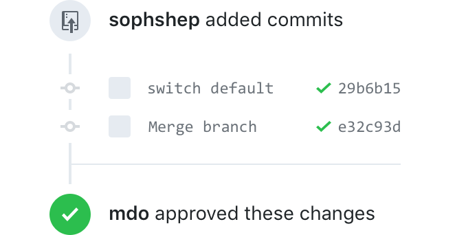 Browse commits, comments, and references related to your pull request in a timeline-style interface. Your pull request will also highlight what’s changed since you last checked.