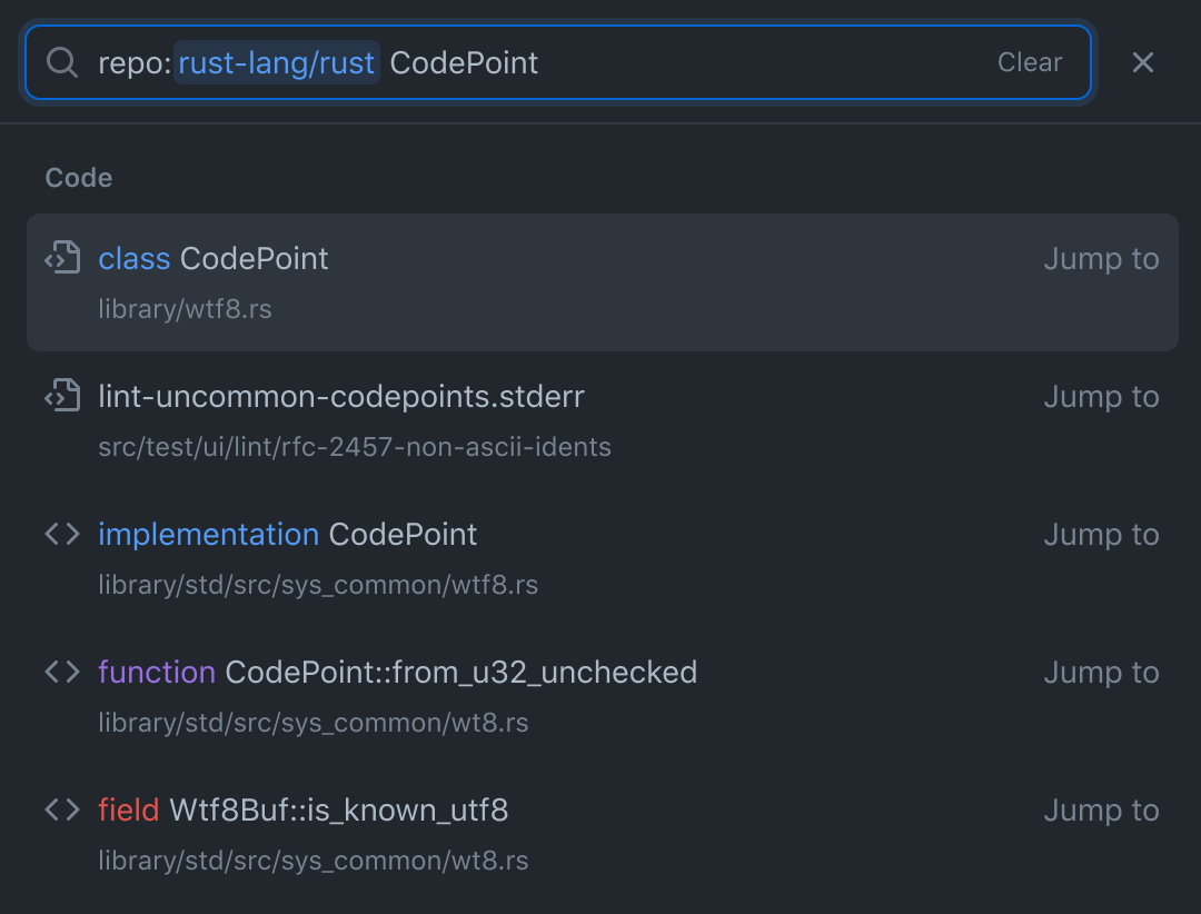Code search turns what would've been a ~10 minute grep search into a 2 second UI search