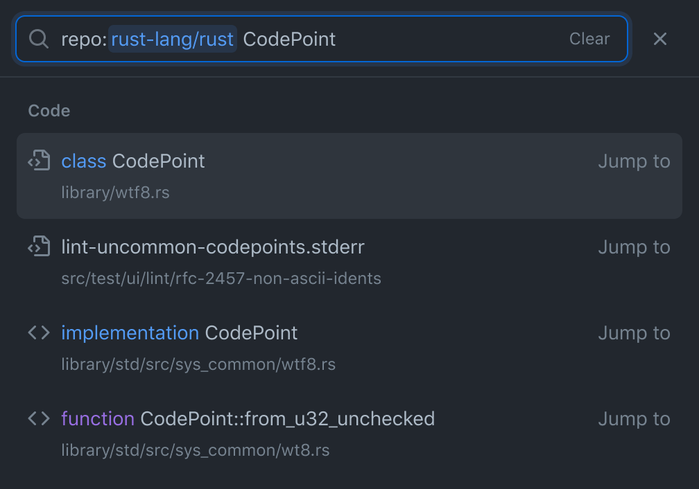 GitHub code search understands your code—and brings you relevant results with incredible speed.